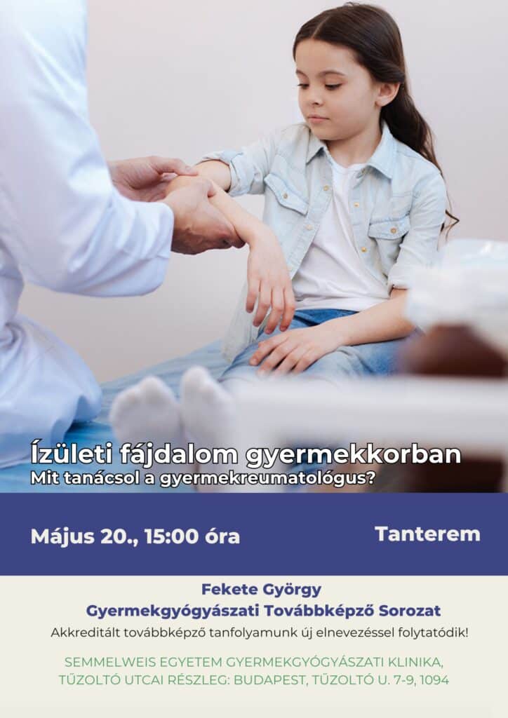 Nagy tisztelettel várjuk Önöket a Fekete György Gyermekgyógyászati Továbbképző Sorozat keretében megrendezett Ízületi fájdalom gyermekkorban? Mit tanácsol a gyermekreumatológus című eseményünkre Tűzoltó részlegünk Tantermébe 2025. május 20-án (kedden) 15:00 órától.