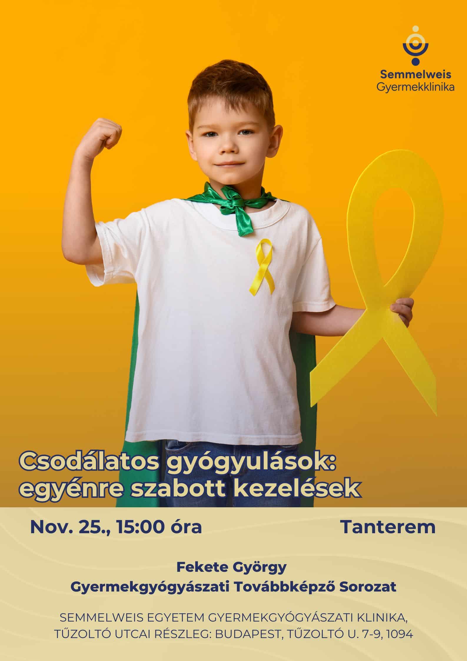 Tisztelettel várjuk Önöket a Fekete György Gyermekgyógyászati Továbbképző Sorozat keretében megrendezett Csodálatos gyógyulások: egyénre szabott kezelések című eseményünkre Tűzoltó részlegünk Tantermébe 2025. november 25-én (kedden) 15:00 órától.