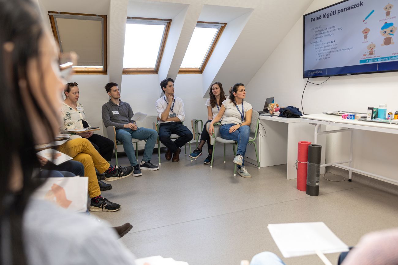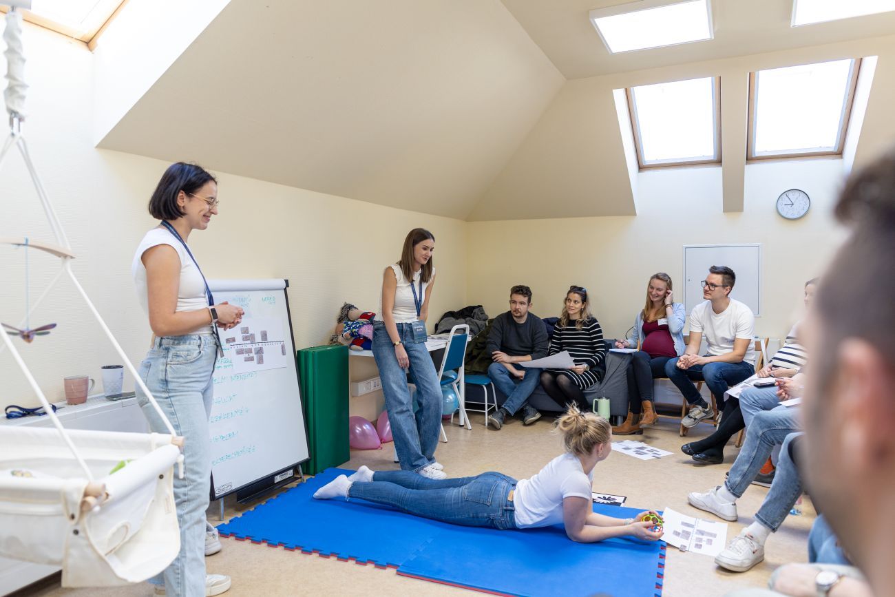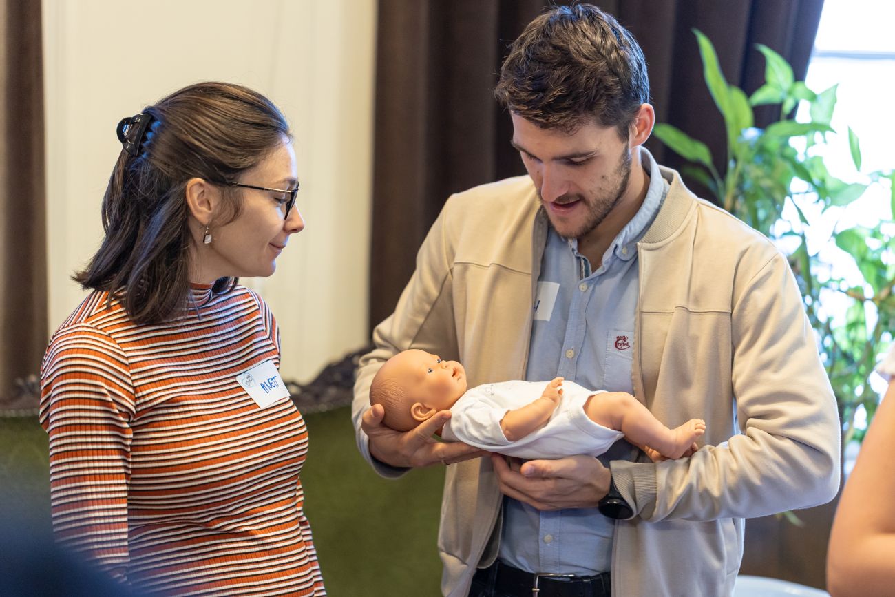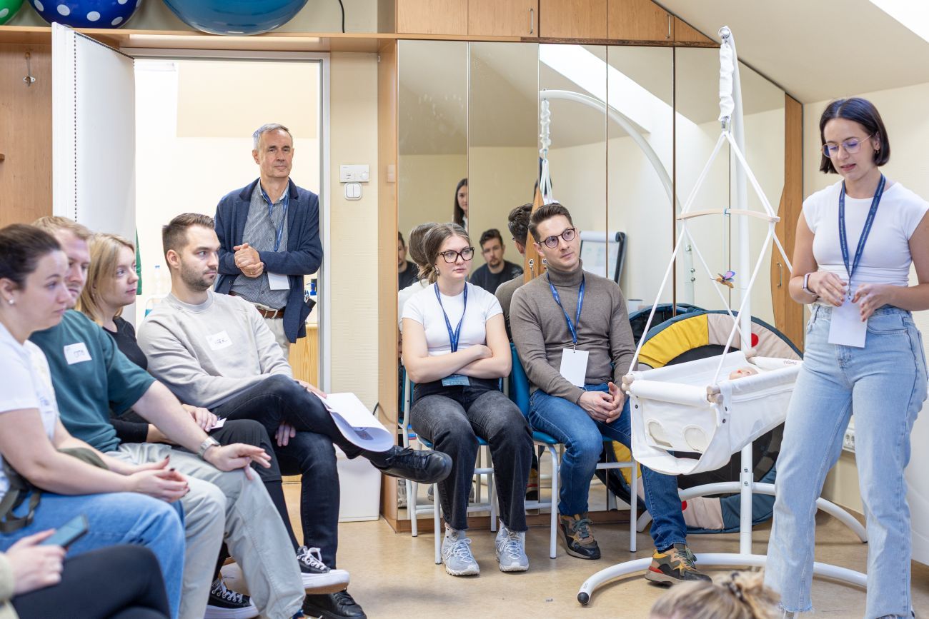 A nap során közel harminc szakember – köztük több gyermekgyógyász, gyermekpszichiáter, pszichológus, gyógytornász, laktációs szaktanácsadó, alvásmedicina specialista, ápoló és integrált szülő–csecsemő konzulens – osztotta meg tudását és tapasztalatát. A résztvevők számára ez nem csupán tanulás, hanem mély, személyes élmény is volt: a kiscsoportos foglalkozásokon gyakorolhattak, kérdezhettek, megoszthatták aggodalmaikat, és más párok történetein keresztül is ráláthattak saját érzéseikre. A visszajelzések szerint a közösségi megtapasztalás a program egyik fontos eleme:
