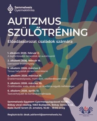 2026. február elején ismét előadássorozatot indítunk olyan szülők, érdeklődő családok részére, akiknek a gyermeke, hozzátartozója autizmus-spektrumzavarral (ASD-vel) él. Célunk az, hogy korszerű, tudományos alapú ismereteket nyújtsunk az ASD-ről, ezáltal segítsük Önöket abban, hogy jobban megértsék az ASD-ben érintett családtagjukat. Megmutatjuk azokat az eszközöket, amelyeket az otthoni élet során a mindennapokban tudnak használni, valamint útmutatást nyújtunk a legmegfelelőbb terápia kiválasztásához.