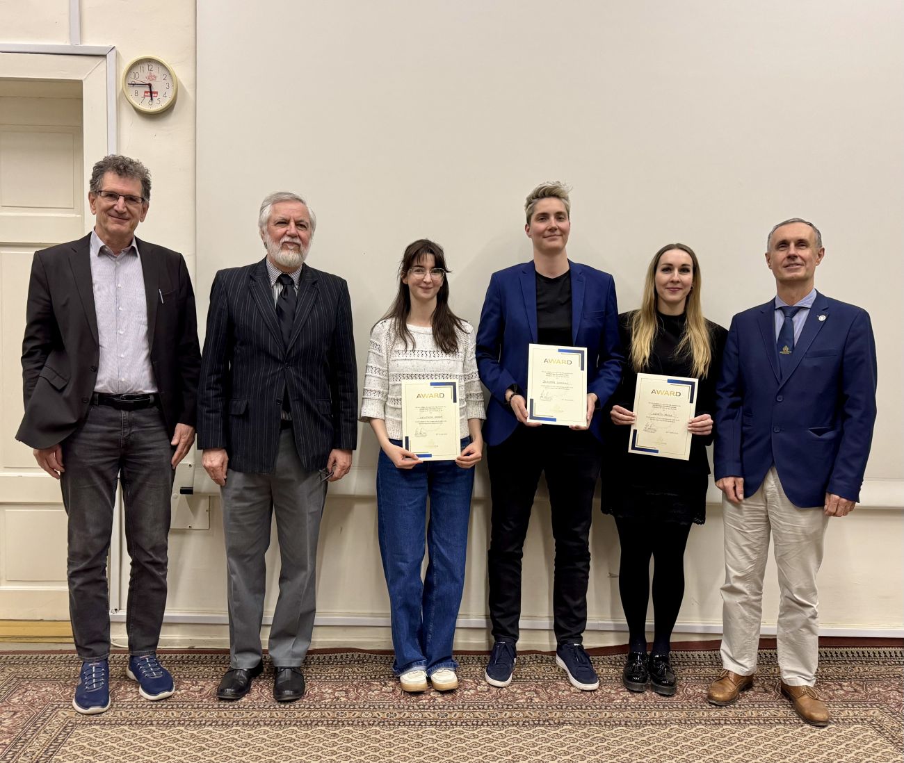 A bíráló bizottság – amelynek tagjai Prof. Arató András, Prof. Reusz György és Prof. Prókai László (North Texas University, USA) voltak – három előadást emelt ki díjazásra, és mindhárom nyertes egy-egy hazai konferencia-részvételt érdemelt ki. Prof. Prókai László a Fulbright Specialist program keretében immár második alkalommal látogat intézetünkbe vendégoktatóként, jelenléte a hazai és nemzetközi tudományos kapcsolatok élő példája.