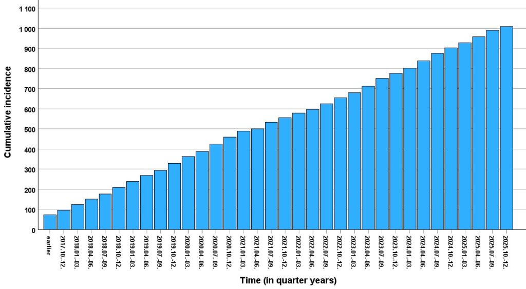 Due to improving frontline treatment, the relapse rate is decreasing in many countries. However, our registry’s recruitment is quite constant around a yearly 100-120 cases so far. We think this is partly due to the high fertility rate and growing paediatric population of the larger countries contributing to our registry, partly because more countries and groups keep joining our project and register their cases.