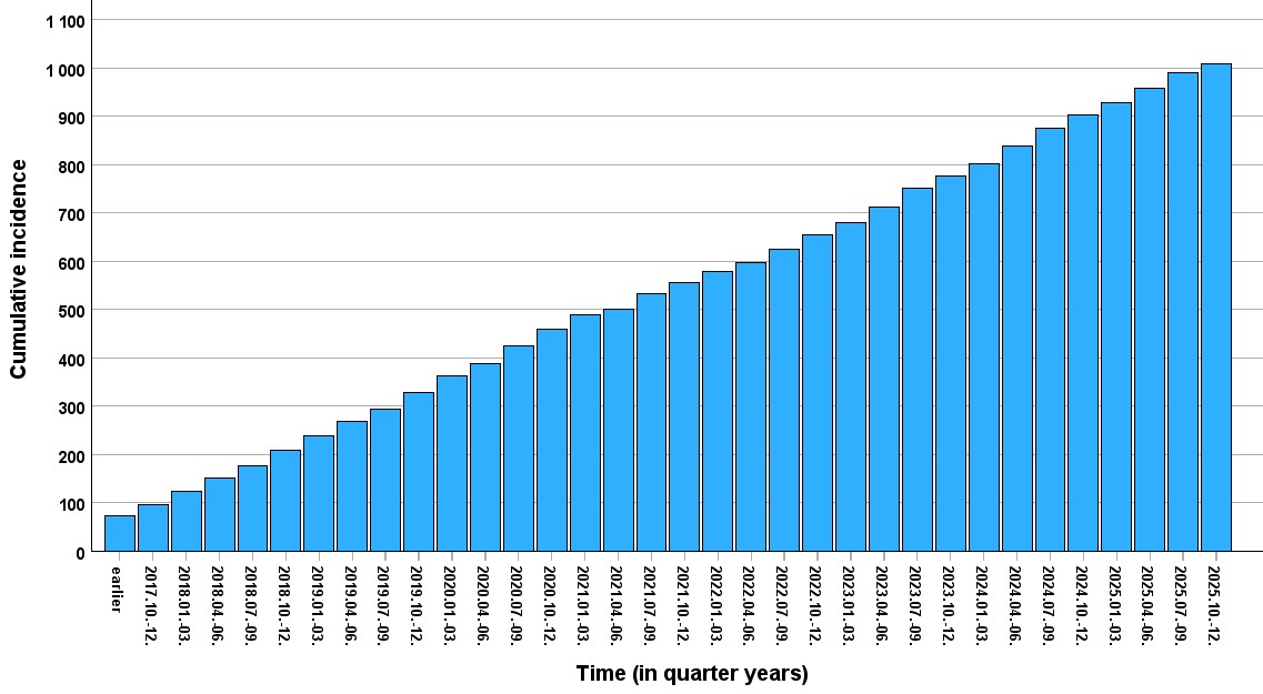 Due to improving frontline treatment, the relapse rate is decreasing in many countries. However, our registry’s recruitment is quite constant around a yearly 100-120 cases so far. We think this is partly due to the high fertility rate and growing paediatric population of the larger countries contributing to our registry, partly because more countries and groups keep joining our project and register their cases.