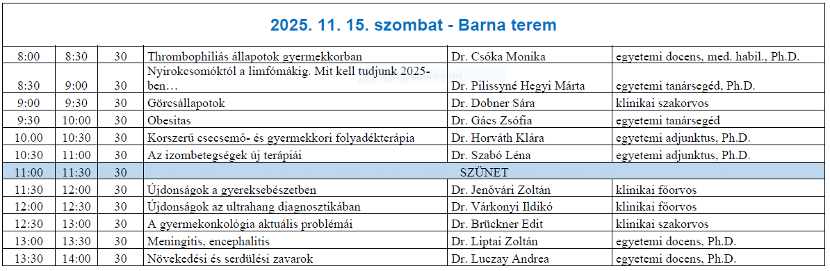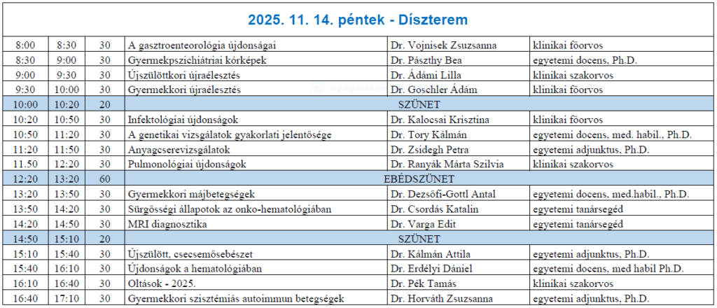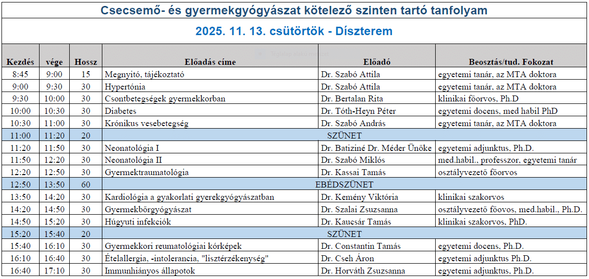 Csecsemő- és gyermekgyógyászat kötelező szinten tartó tanfolyam – 2025. november 13-15.