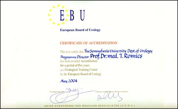 Eseményekben bővelkedett az Urológiai Klinika élete az idei első félévben. Egy héttel hamarabb lett az EU tagja, mint az ország. Erről és más örvendetes történésekről beszél dr. Romics Imre igazgató professzor, aki kis kitérővel három évtizede dolgozik a klinikán. – A diplomázás után a Kórélettani Intézetben kezdtem 1971-ben. De urológus szerettem volna lenni, három esztendő múltán vett fel prof. dr. Babics Antal, akkori igazgató a klinikára. Azóta mindössze kétszer két és fél évet voltam távol innen. Ezt az időt Németországban, illetve az ORFI Urológiai Osztályának főorvosaként töltöttem. Onnan tértem vissza hét évvel ezelőtt a klinika élére. Nem volt könnyű... A kollégák fele idősebb volt nálam, és a főnökeim voltak korábban. Ráadásul jelentős adósságot vettem át, ami miatt negatív balanszot hurcoltam évekig. Ettől a tehertől sokáig nem szabadultam meg, most először lett pozitív a szaldónk. Szóval komoly személyi és szakmai változásra volt szükség. Külföldi kapcsolatok – Ennek tudható be, hogy az European Board of Urology (EBU) áprilisban akkreditálta a klinikát? – Ez egy biztos, kézzelfogható jele annak, hogy egységes, jó hangulatú csapat jött létre. Kétéves, igen szigorú procedúra előzte meg az akkreditációt. Nem csak számtalan kérdésre kellett válaszolnunk, adatokat közölnünk, hanem kétszer személyesen is ellenőrizték a klinika oktató, tudományos és gyógyító munkáját. Megfeleltünk a feltételeknek: európai képzőhellyé váltunk. Ezentúl a kontinens összes országából hozzánk érkező rezidensek itteni tanulmányai beleszámítódnak a képzési időbe. De más megtiszteltetés is ért áprilisban: tagja lettem az ESU-nak (European School of Urology). Ennek a 120 urológus professzorból álló testületnek 15 tagú vezetősége továbbképző előadásokat szervez az európai országokban, előadókat jelöl ki, illetve a board-tagok is tartanak előadásokat – jómagam legközelebb Belgrádban. Emellett változatlanul dolgozom az EAU (European Assotation of Urology) különböző bizottságaiban. Ezek a megbízatások azért is fontosak, mert az európai urológiai „hadszíntéren” kevés a közép-kelet-európai. Az ESU vezetőségében csak én képviselem a régiót, az EBU certifikációt pedig elsőként mi kaptuk meg, azóta két lengyel klinika is elnyerte. A térségből szintén egyetlenként vagyok tagja a British Journal of Urology International szerkesztőbizottságának. Júliustól már az European Urology Today szerkesztőbizottságságához is tartozom. Erre megint csak áprilisban kértek fel, miként arra is, hogy tartsak előadást a SIU (Societas International d' Urologie) kongresszusán, amelyre a kontinens e térfeléről még egy lengyel és egy orosz kollégát hívtak meg előadónak. – Akkor az április igazán kiemelkedő hónap volt professzor úrnak... – Úgy látszik, ahogy baj nem jár egyedül, úgy az öröm sem. Májusban jelent meg a klinikán szerkesztett új interdiszciplináris folyóirat, az Uroonkológia, melynek szerkesztőbizottsági tagjai kiváló hazai kollégák, és a nemzetközi tanácsadó testületben is elismert európai, amerikai szakemberek vannak. Tavaly óta szerkesztem az Urológiai Szemlét, az angol Urological Survey „mását”, a legfontosabb dolgozatok rövid összefoglalásának magyar fordítását a Pfizer támogatásával adjuk ki. Az utóbbi időben néhány szomszédos ország szakmai szervezete tiszteletbeli taggá választott, legnagyobb kitüntetésként két éve a Német Urológus Társaság 50. „levelező” tagja lettem. Itthon nemrég járt le négy esztendős elnöki megbízatásom az Urológiai Szakmai Kollégiumban, és áprilistól az Akadémia közgyűlésének doktor képviselője vagyok. Közösséggé kovácsolódás – Jelentősen gyarapodott a klinika mostanában. – Mint arról már az újságban is olvashattak, februárban alapítványi és pályázati pénzekből ultrahanggal, laparoszkóppal, egyéb műszerekkel bővítettük az ambulanciát. Azóta átépítettük a portát, elegáns recepció várja a belépőket. Az elmúlt hét esztendőben tantermet, urodinámiás laboratóriumot, egyágyas kórtermeket létesítettünk, és nagymértékben növeltük a műszerparkot. 1997-ben mindössze egy ureterorenoszkóppal meg nephroszkóppal rendelkezett a klinika. Azóta 3-4 garnitúrát „elfogyasztottunk”, hiszen az endoszkópos műtétek száma az 1996-os 15-ről mára 200-ra nőtt. – Elégedett a jelenlegi állapottal? – Soha nem vagyok az. Munkatársaimat is folyton a többre, a jobbra ösztökélem. Részben az ő érdekükben, de természetesen a klinika is csak akkor megy előre, ha mindenki, orvosok és szakdolgozók együtt tolják előre a szekeret. Az egészségügyi tevékenység szolgálat. Betegközpontúnak kell lenni. A betegektől kapott legnagyobb elismerés, ha nemcsak a bánásmódot dicsérik, hanem azt is, hogy betegségük súlyosságától függő kezelést, törődést kapnak. Ez munkatársaim hivatástudatának legfőbb bizonyítéka. Az együttműködést elősegítik, erősítik a klinikai, orvoskari vacsorák, a Füvészkerti Urológus Napok farsangi báljai, amelyek a mai igen nehéz viszonyok között is elviselhetővé teszik a mindennapok számtalan apró gondjait és eredményes munkához vezetik közösségünket. – h – |