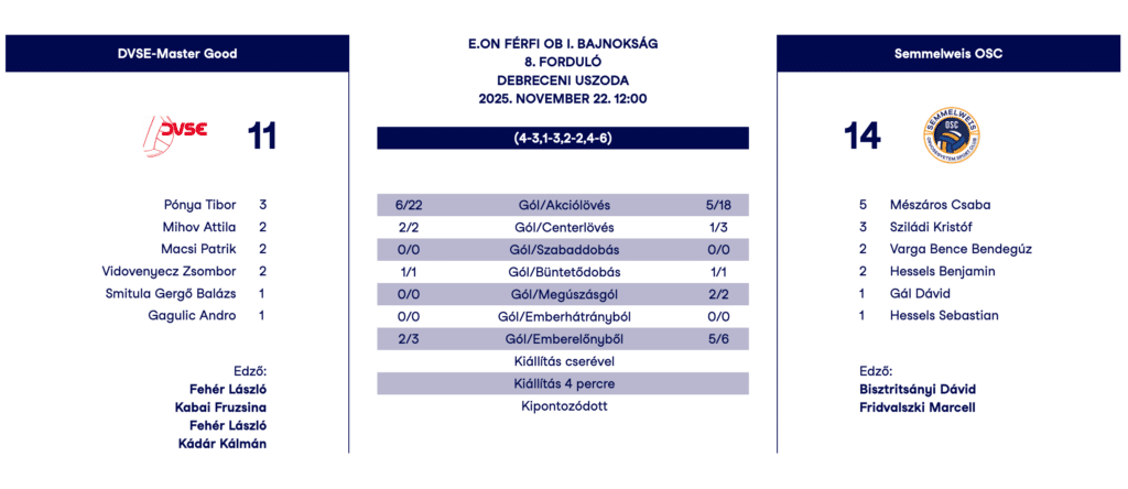 Az első negyedben nem volt annyira egyértelmű, hogy ponttal érkezünk haza, védekezésben voltak kimaradásaink, a Debrecennek pedig hatalmas távoli bombái. A második negyedben azonban sikerült megfordítani a meccset, és játékban a végéig megtartani az előnyt. Mészáros Csaba csapatkapitány 5 góllal járult hozzá a győzelemhez!