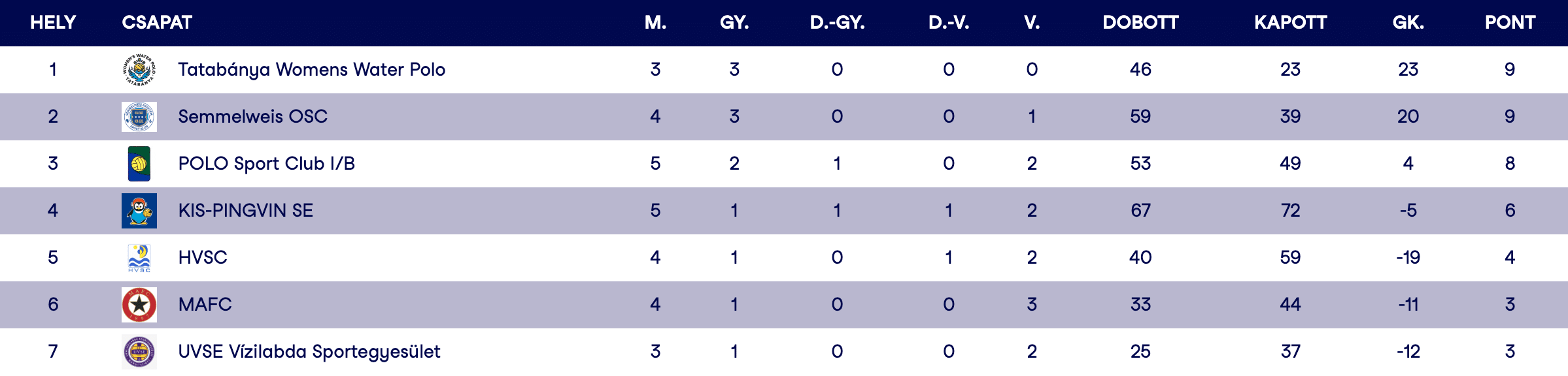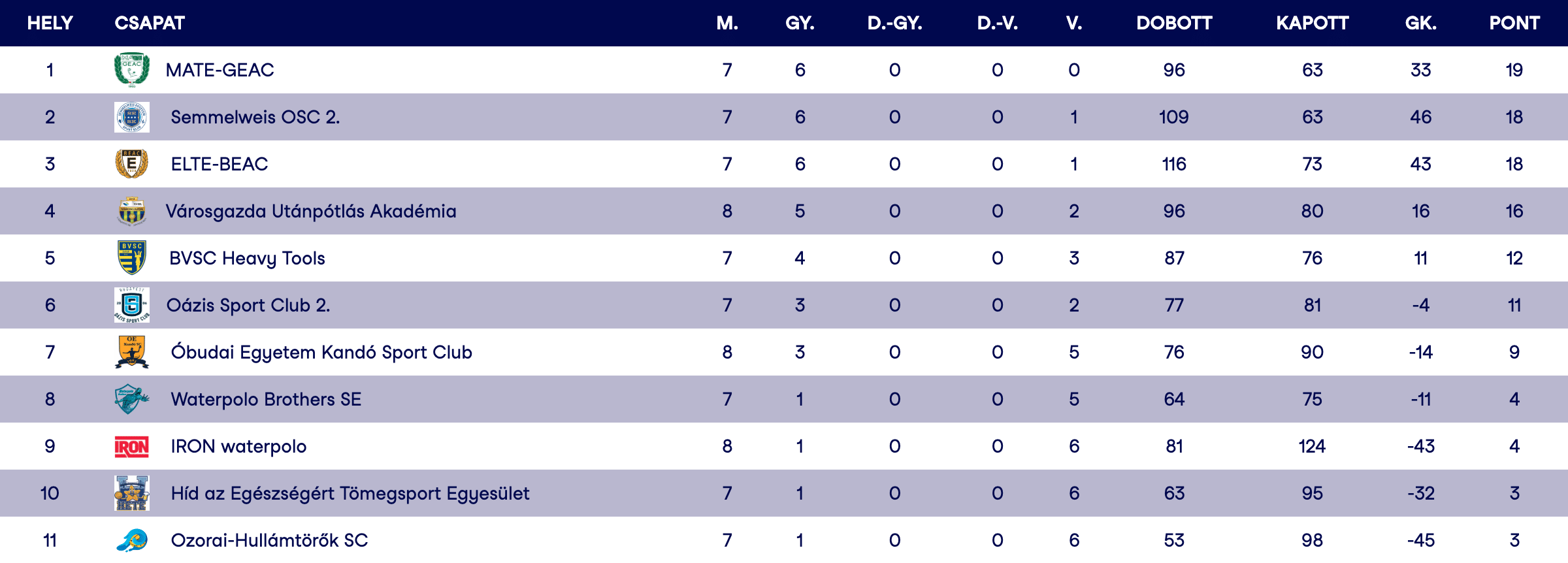 Semmelweis OSC UVSE Vízilabda Sportegyesület (11.30. Vasárnap 18:30, Nyéki Imre Uszoda)
