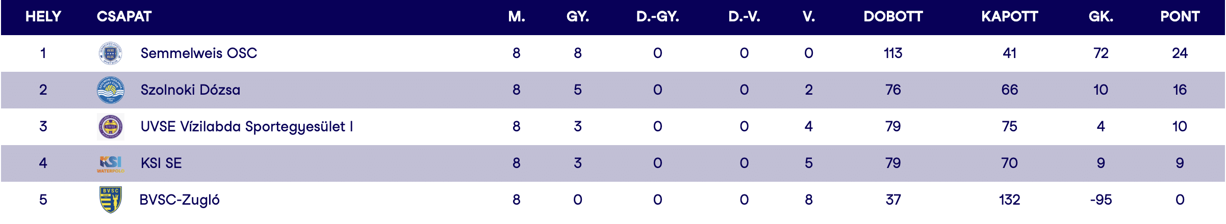UVSE Vízilabda Sportegyesület I – Semmelweis OSC 5-15