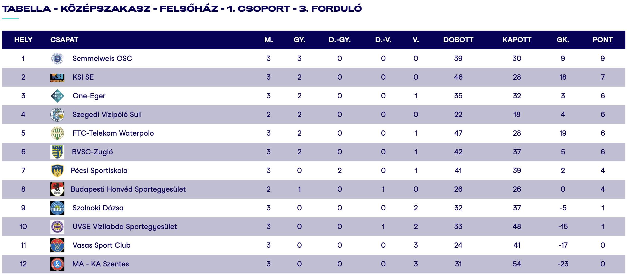 A tabella „egész jól” mutat a 3. forduló után: