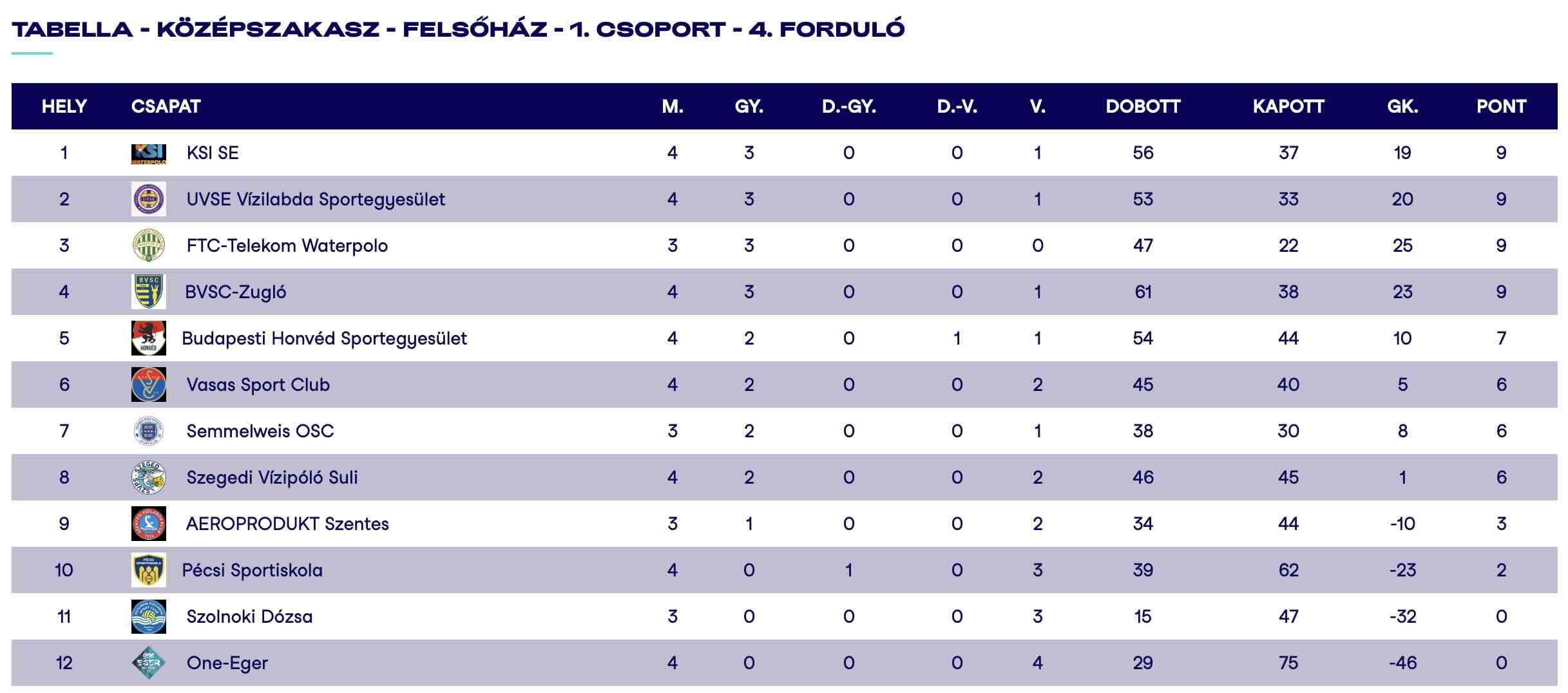 A bajnokság állása a Vízilabda Szövetség Oldalán: