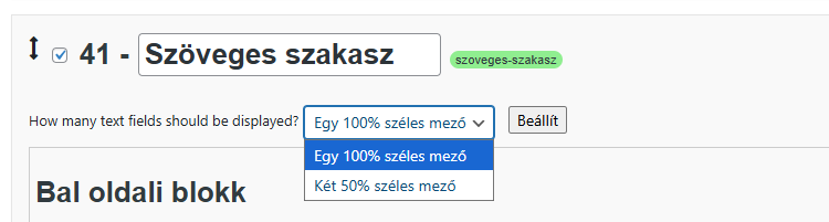 A szakasz előtti négyzet bepipálása után rögtön kiválaszthatjuk a lenyíló lehetőségekből, hogy egy vagy két bokszot szeretnénk-e megjeleníteni. Miután kijelöltük a számunkra megfelelő opciót, kattintsunk a Beállít gombra: